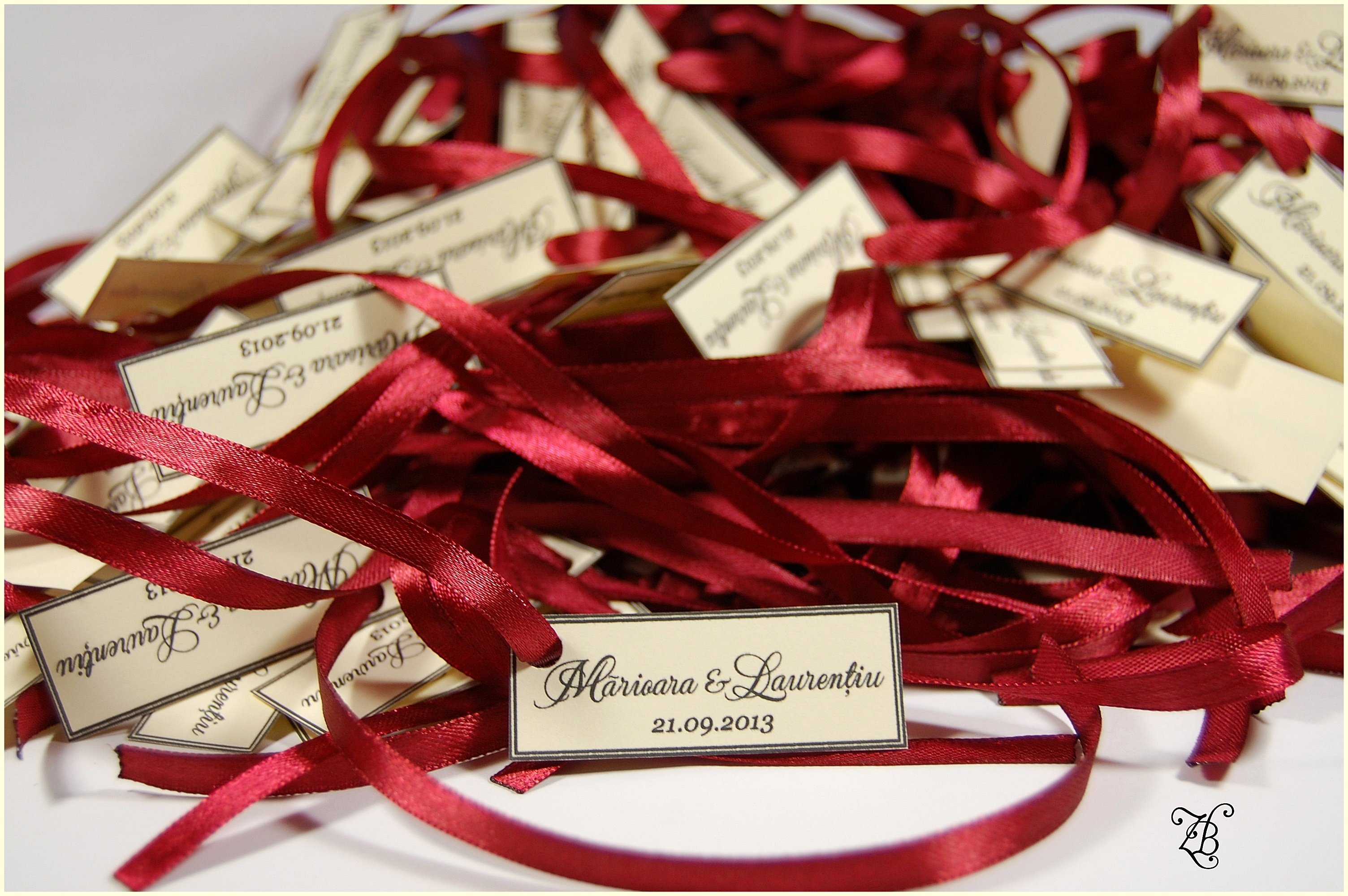 Eticheta pentru marturii realizata din carton crem mat.Pretul include tiparirea si fundita.