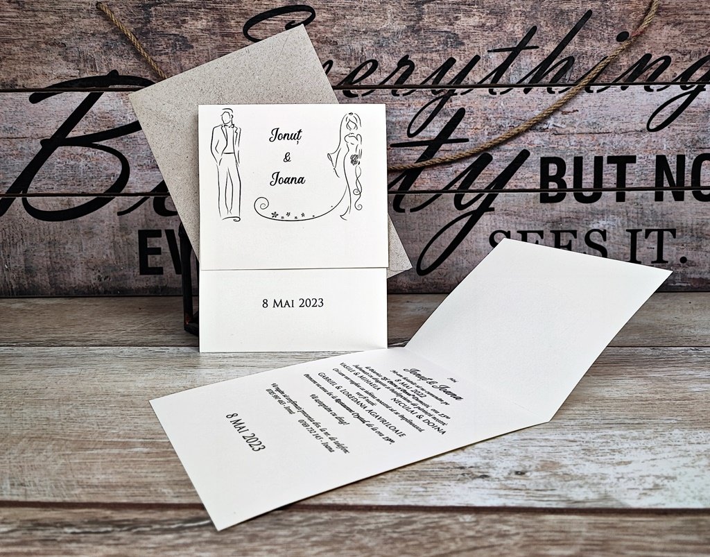 Invitatia are plic kraft asortat inclus in pret.