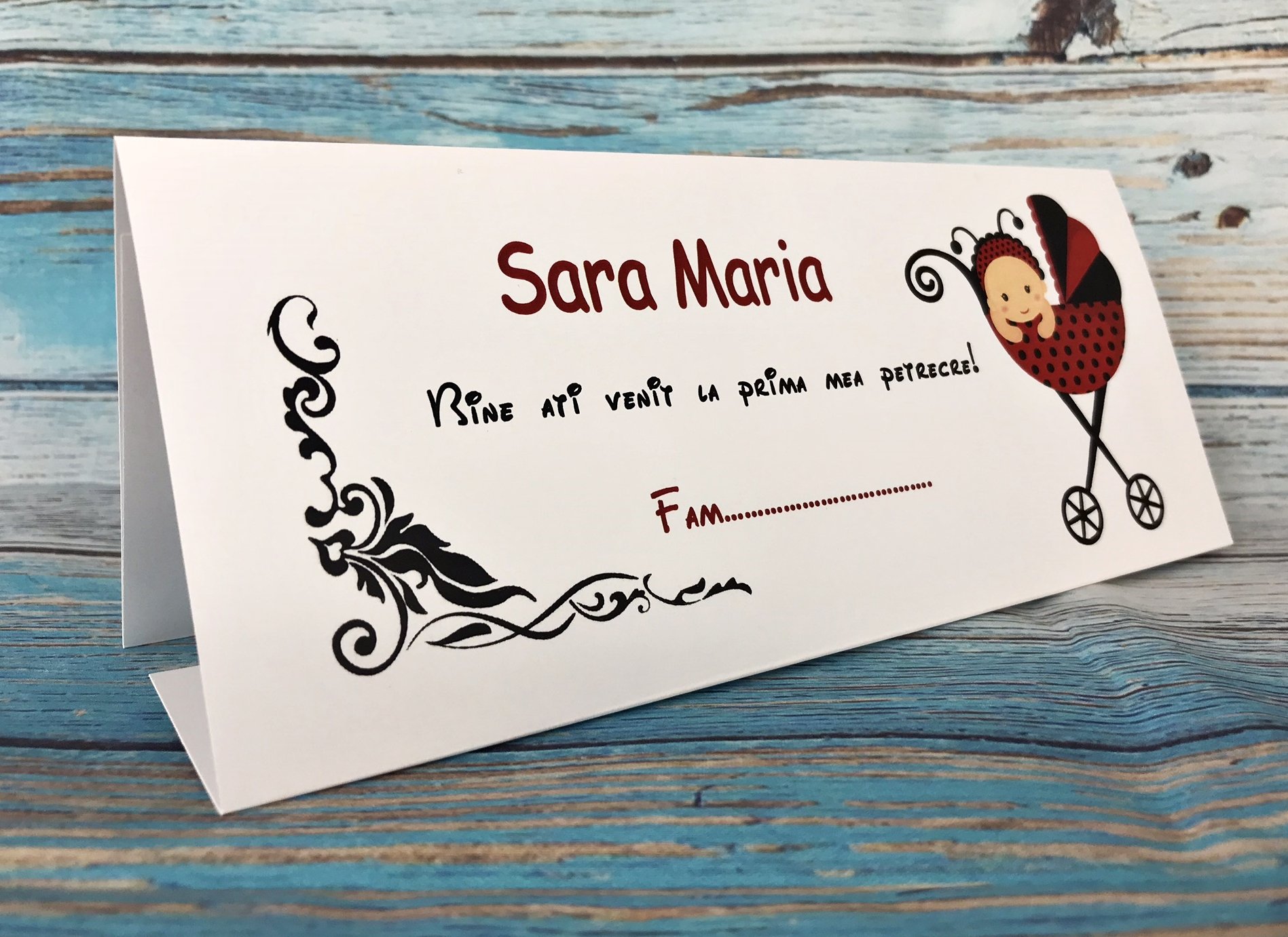 Personalizarea cu text inseamna sa scriem pe plic numele copilui si mesajul dorit.