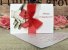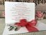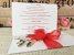 Invitatia este accesorizata cu o funda rosie din organza.