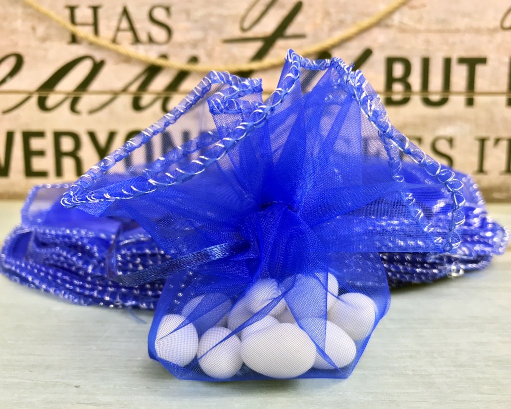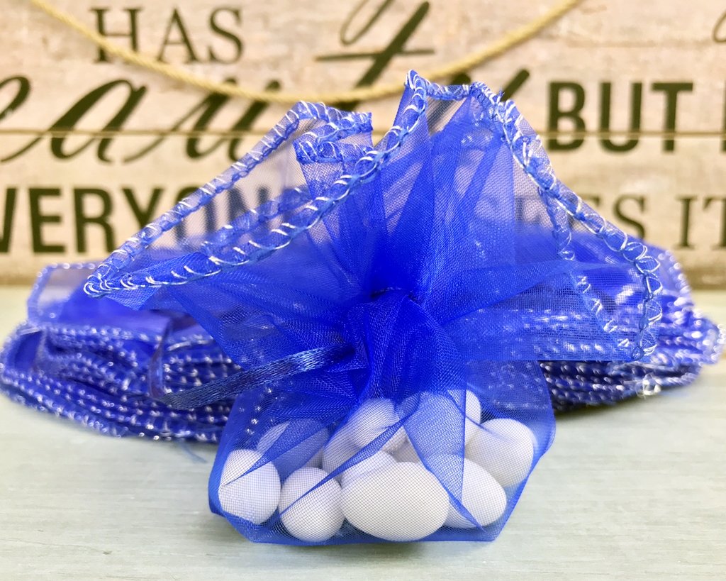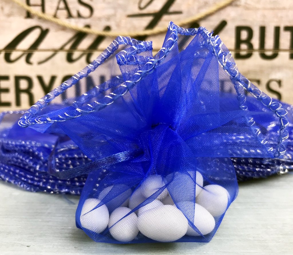 Asamblarea saculetului de organza inseamna: sa puneti in mijlocul cercului bomboanele sau ce doriti sa contina si sa trageti de snur pentru a-l strange.