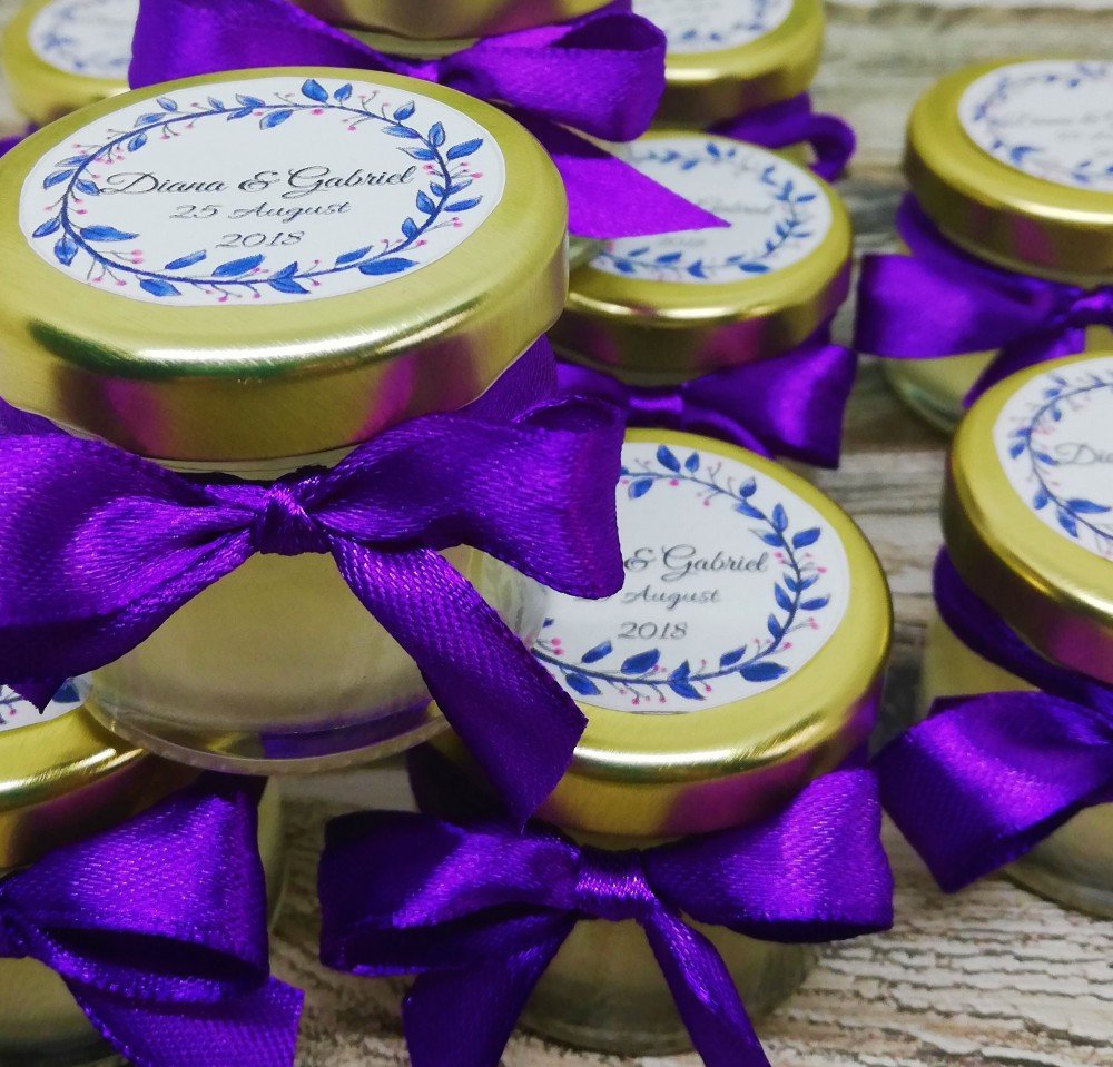 Marturia se poate personaliza cu o eticheta rotunda aplicata pe capac, cu numele fetitei si data botezului.