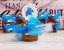 Borcanasul cu miere este legat cu o fundita din panglica de organza blue, avand aplicat carucior de bebelus.