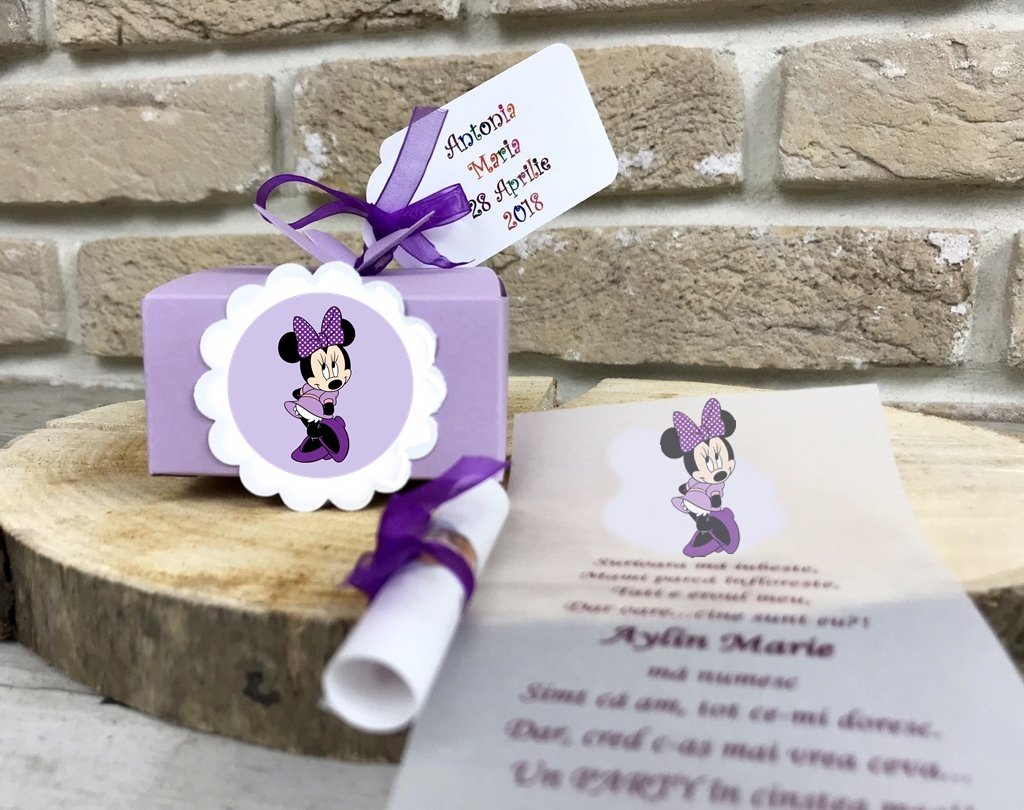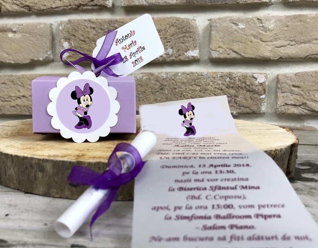 Asamblarea invitatiei inseamna: rularea hartiei cu text si legarea cu fundita, formarea cutiei, legarea etichetei vesele de cutie si lipirea etichetei cu pe fata invitatiei cu dublu adeziv. In cazul in care nu doriti asamblare, veti primi o invitatie asamblata drept model si restul le veti asambla dvs.