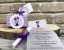 Foaia ruleaza si este prinsa cu ajutorul unei pamblici de organza mov.