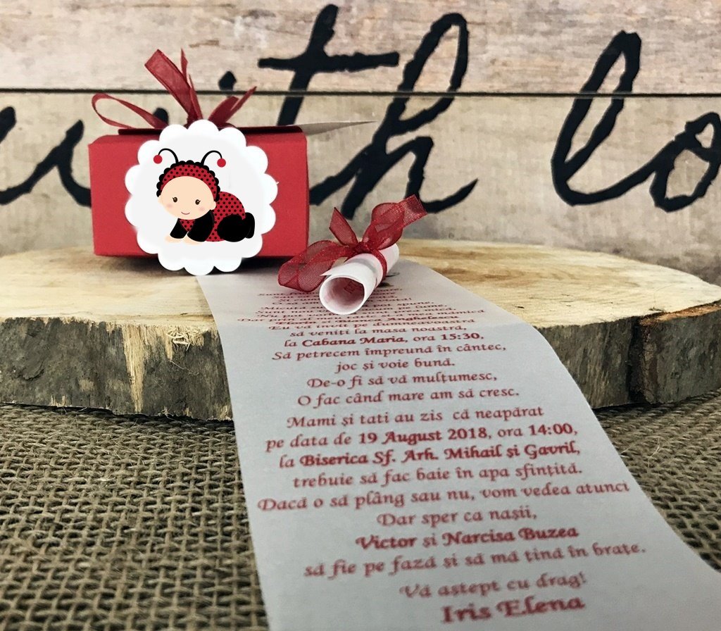 Invitatie de botez tridimensionala in forma de cutiuta formata din: