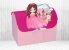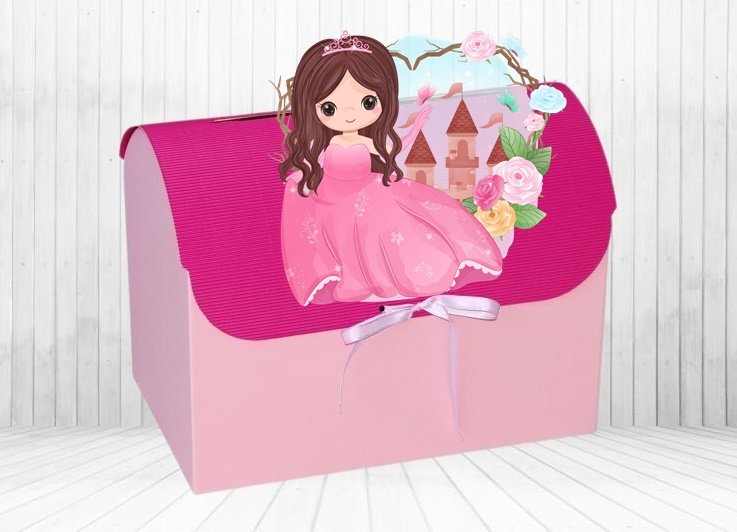 Cufar pentru bani realizat din carton rigid cu textura ondulata de culoare roz cu decupaj in forma de fetita printesa.