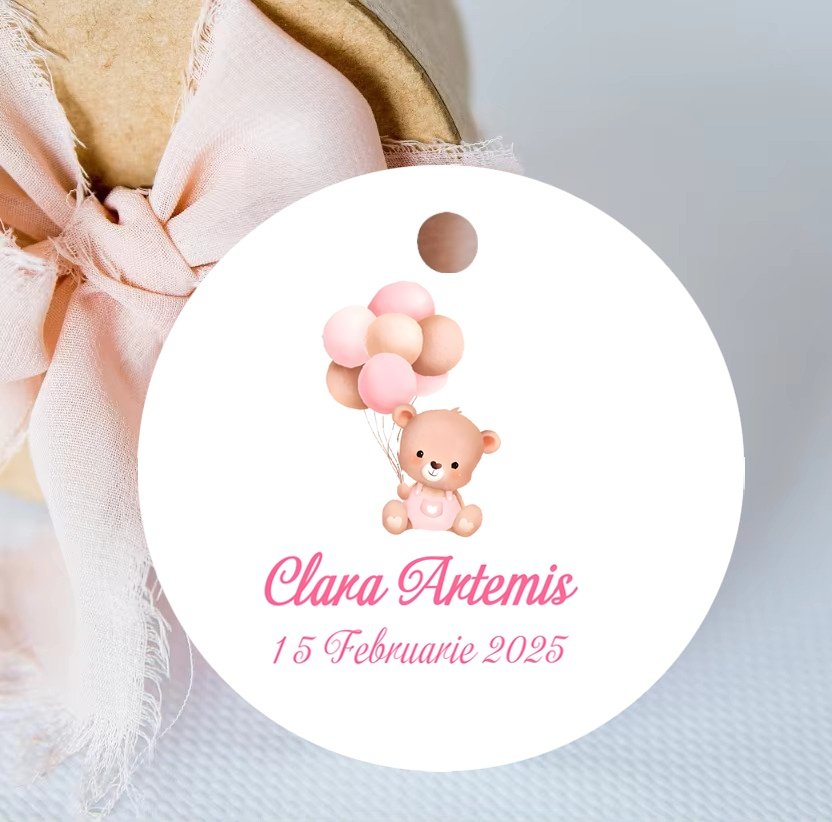 Eticheta se personalizeaza cu numele si data evenimentului.