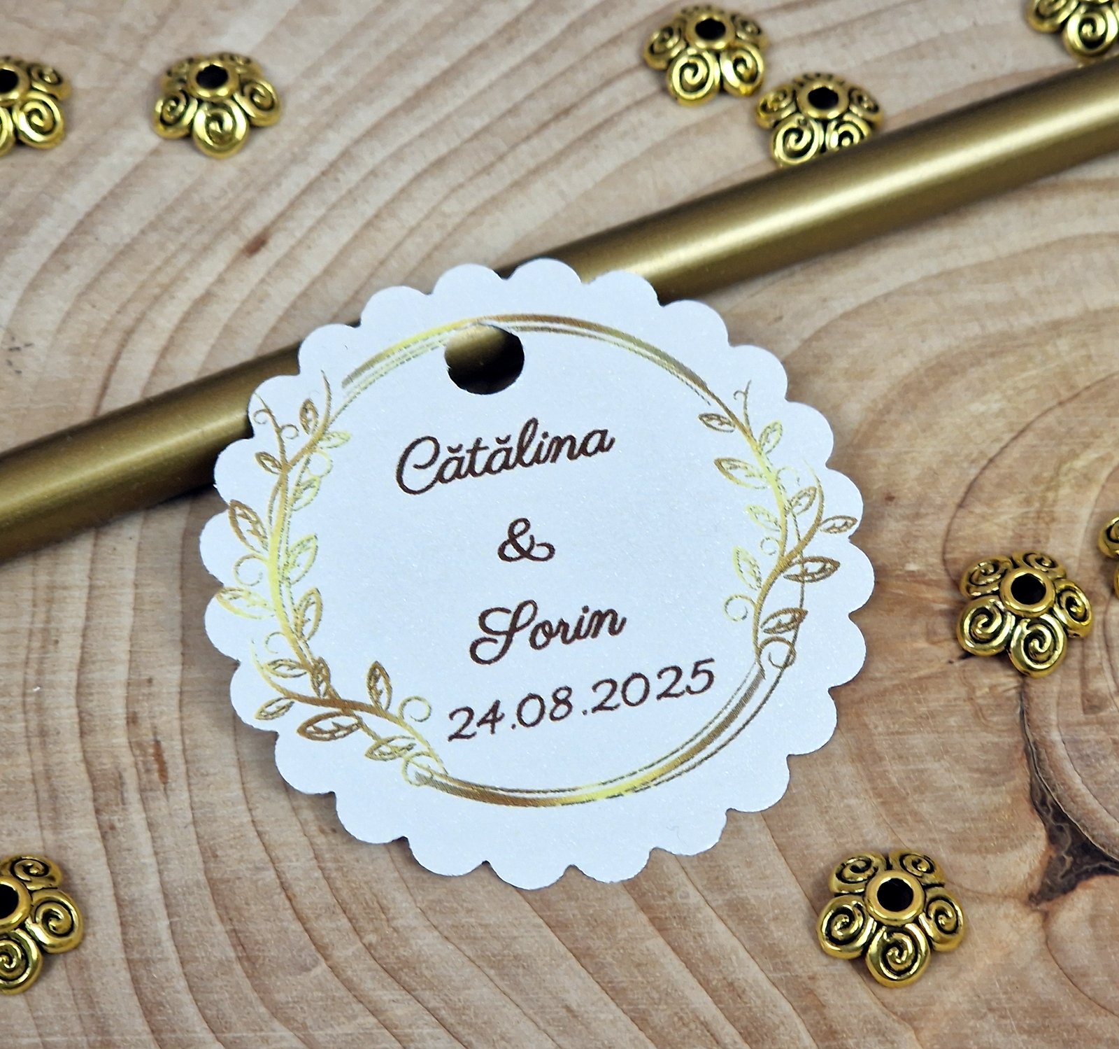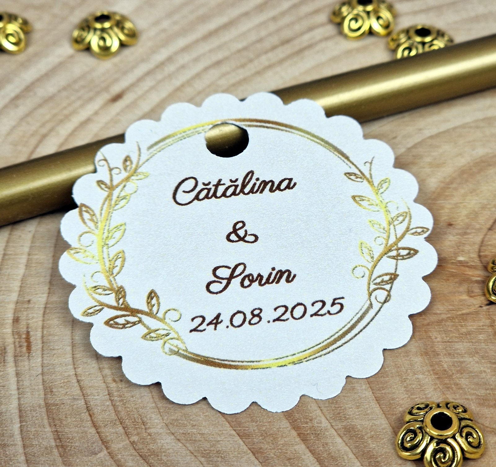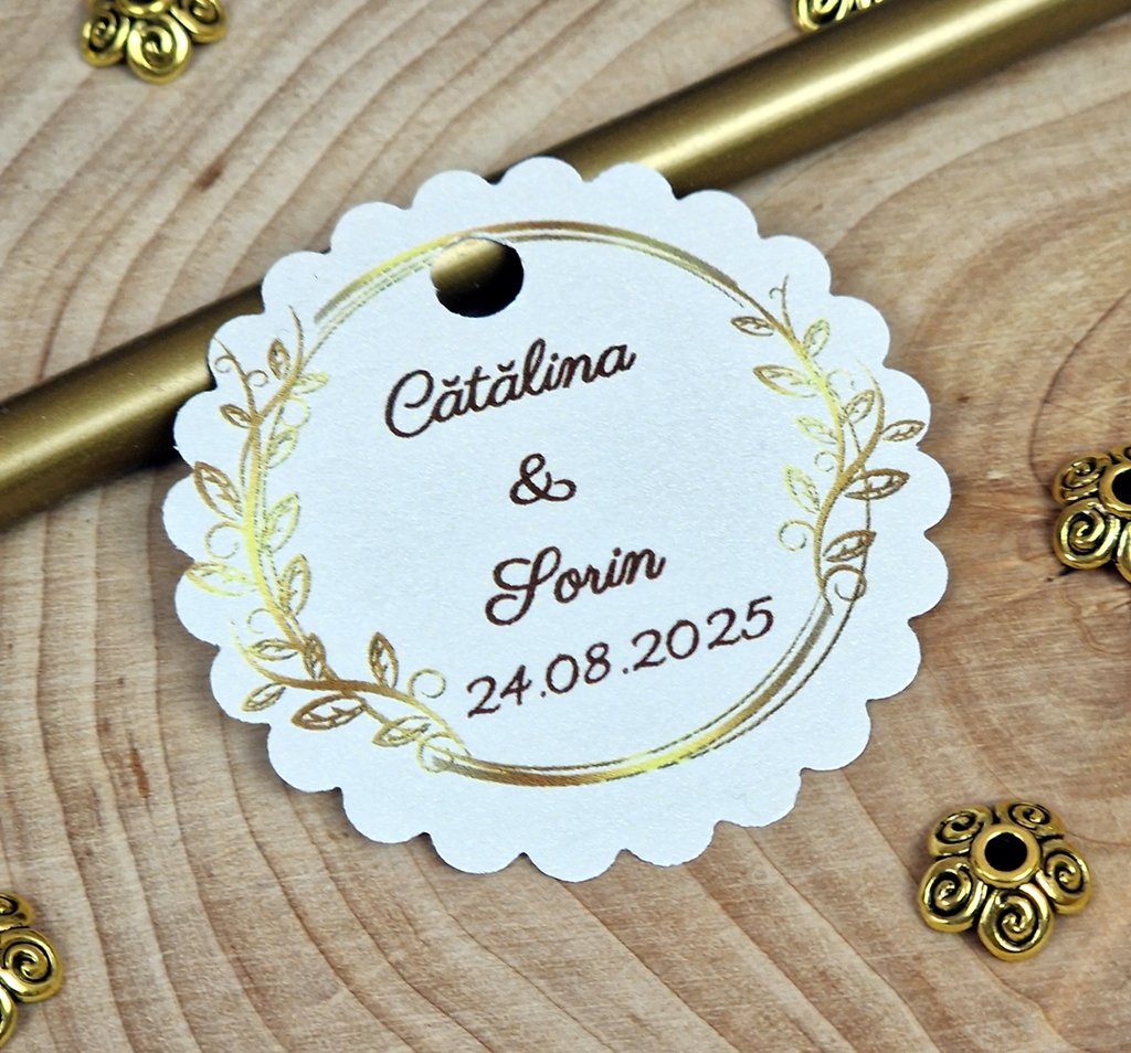 Personalizarea cu numele mirilor si data evenimentului sunt GRATUITE.