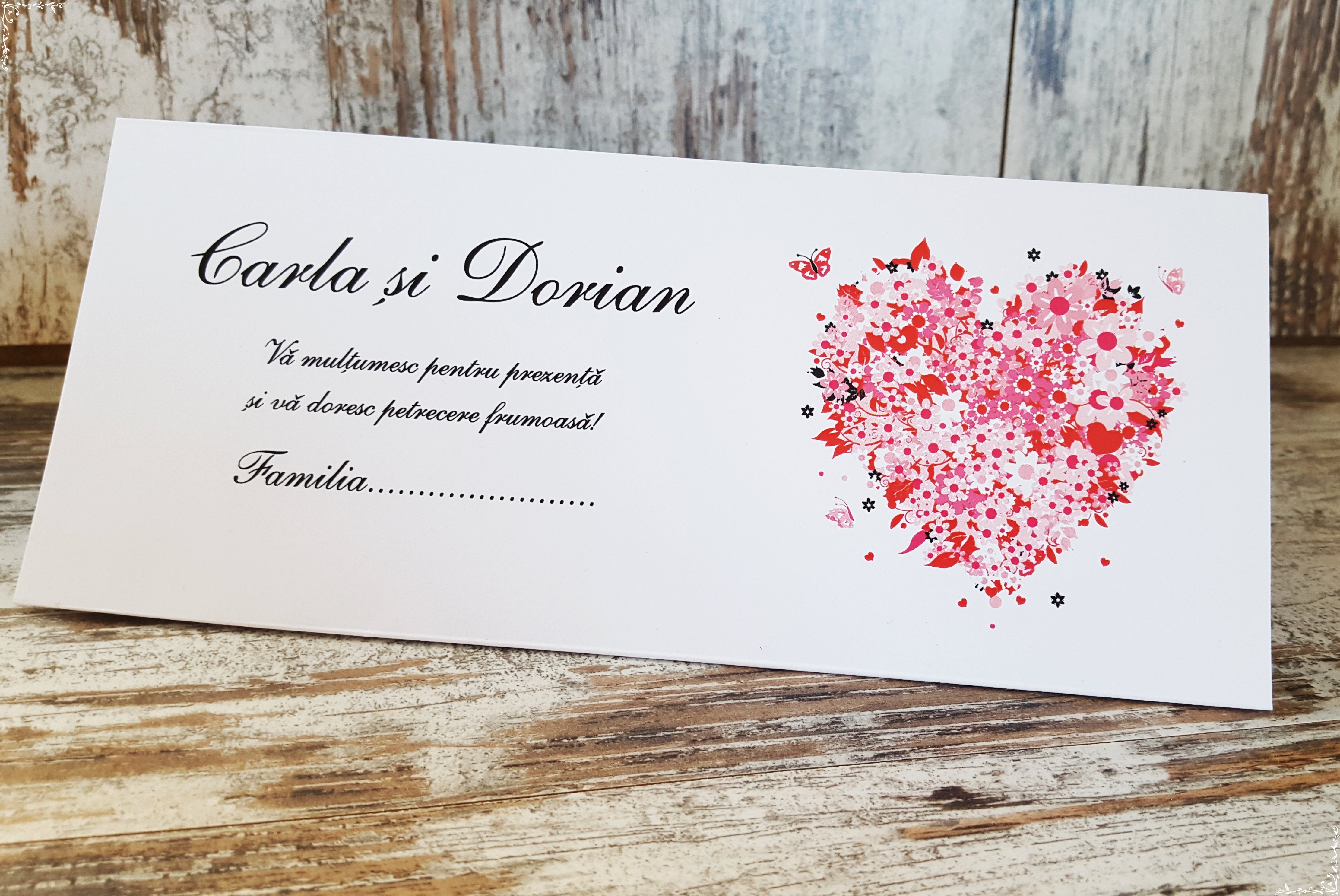Plicul de bani nu se poate personaliza cu numele invitatului, doar in formatului familia..... sau doar .....