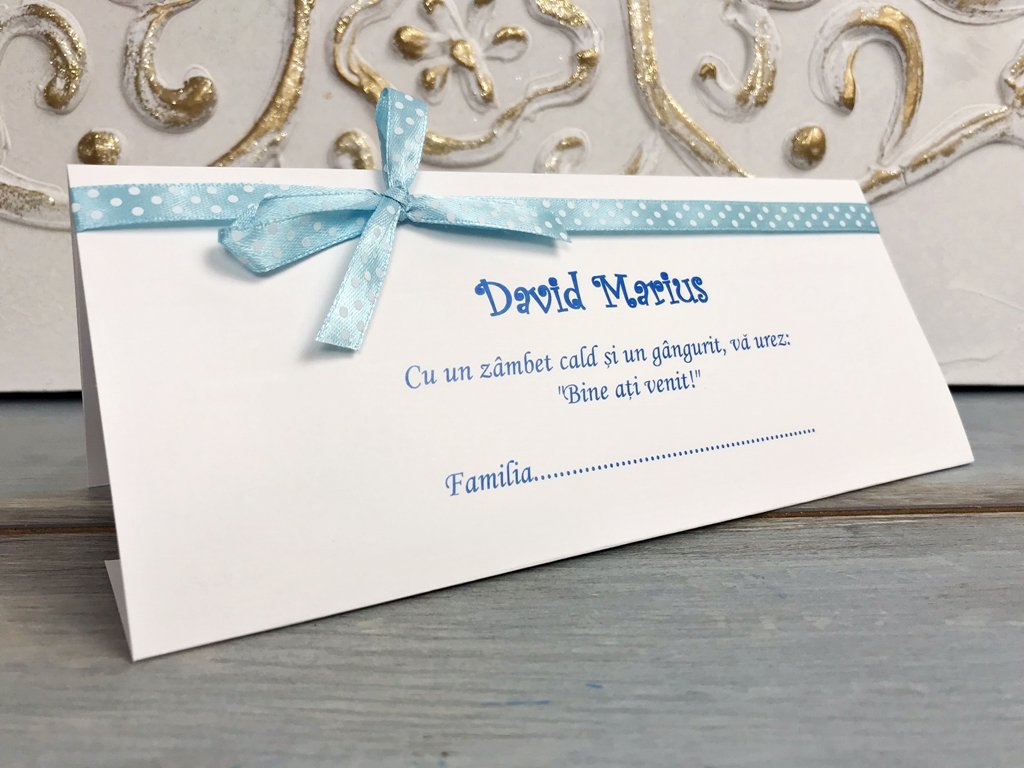 Are un dublu rol: poate fi folosit atat ca place card (pentru asezarea invitatilor la mese) cat si ca plic pentru primirea "darului".