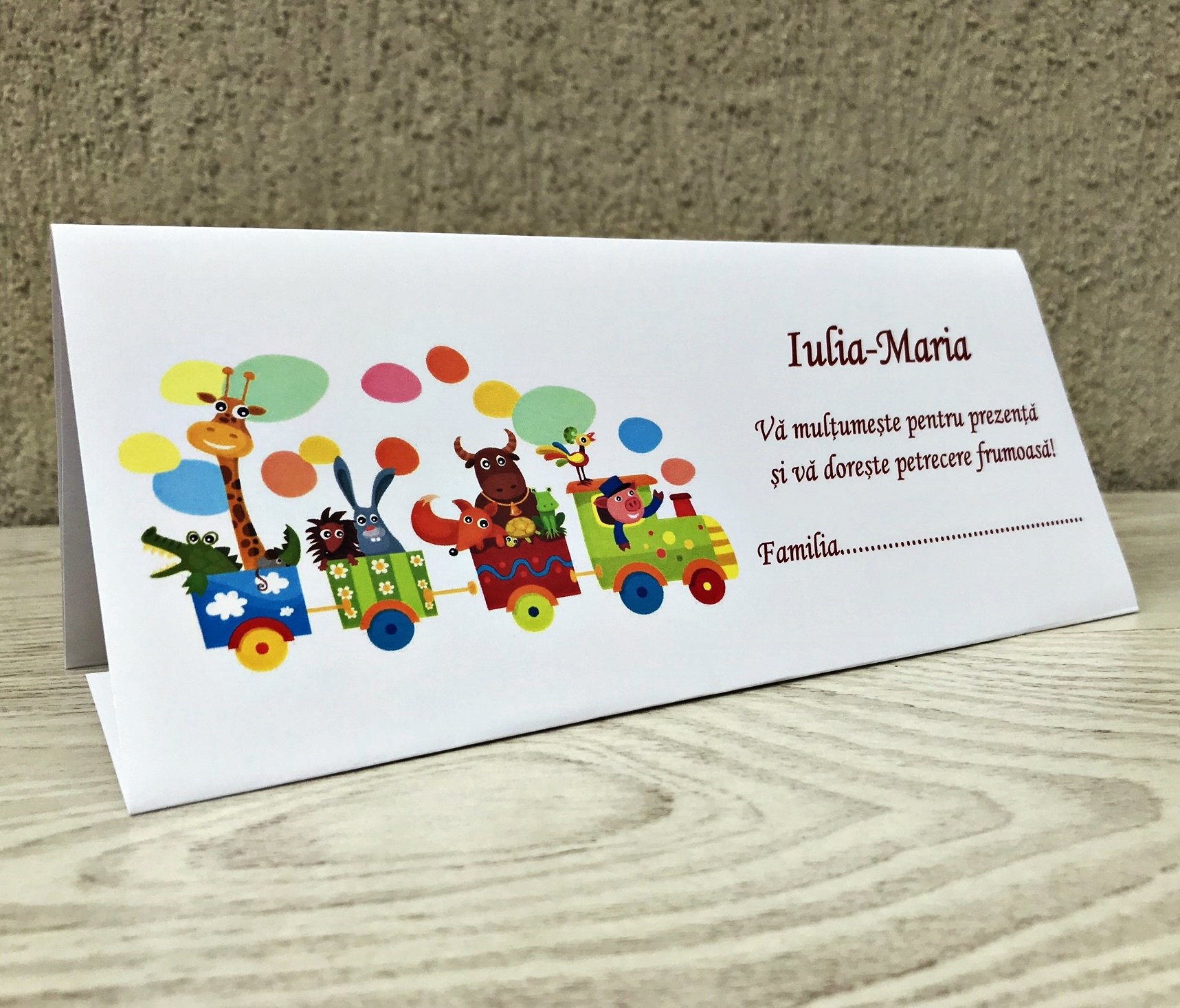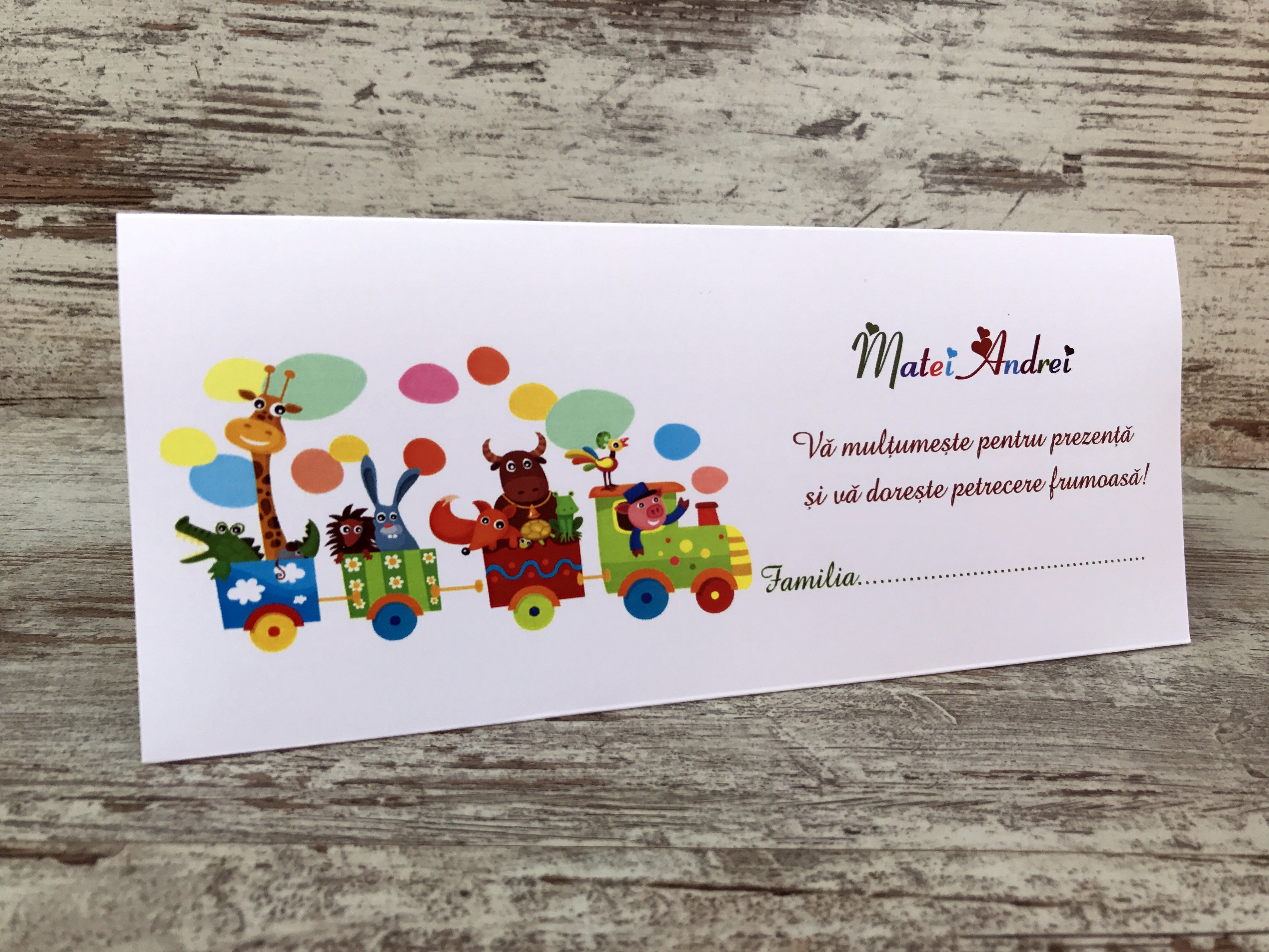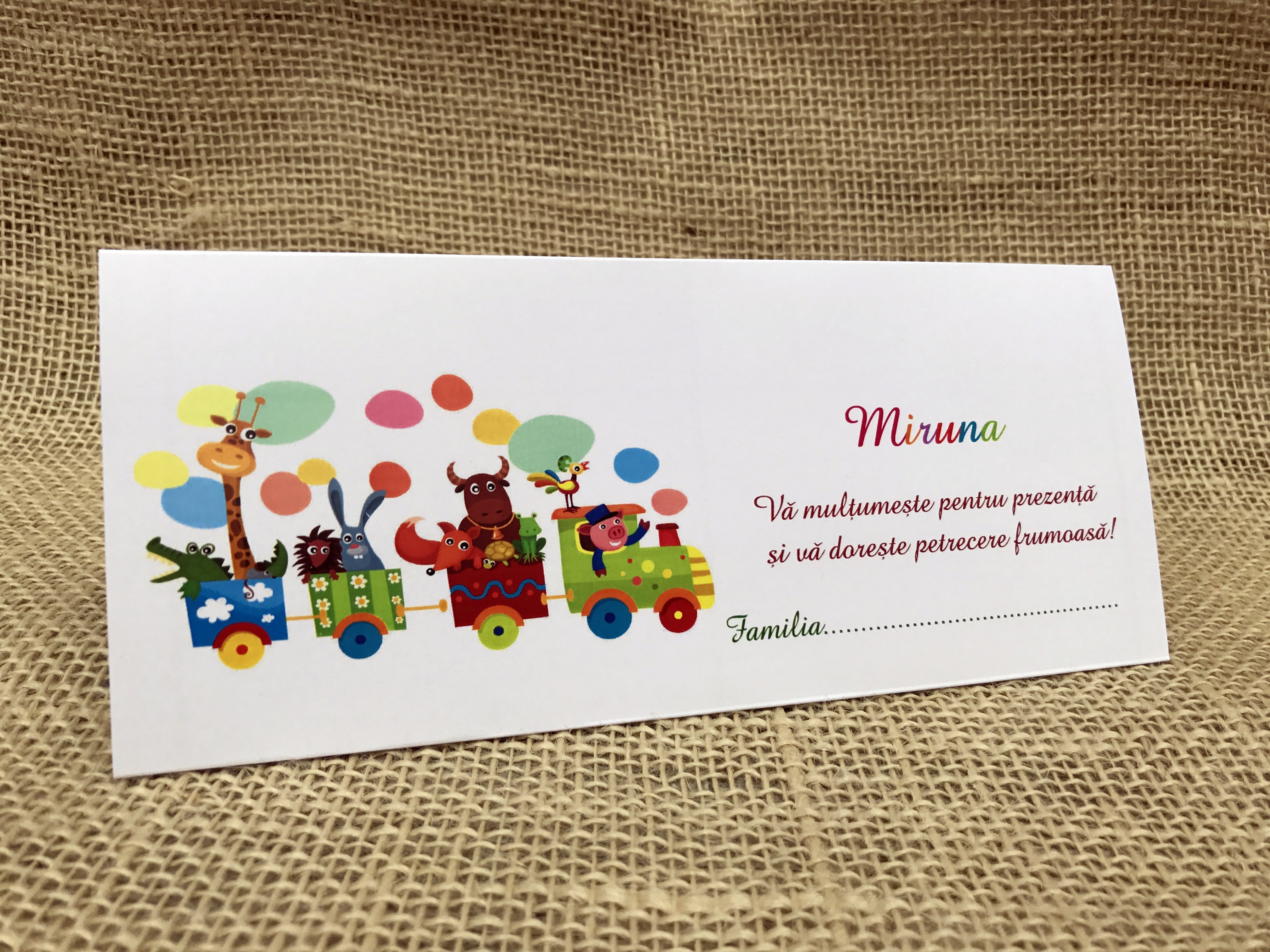 Are un dublu rol: poate fi folosit atat ca place card (pentru asezarea invitatilor la mese) cat si ca plic pentru primirea "darului".