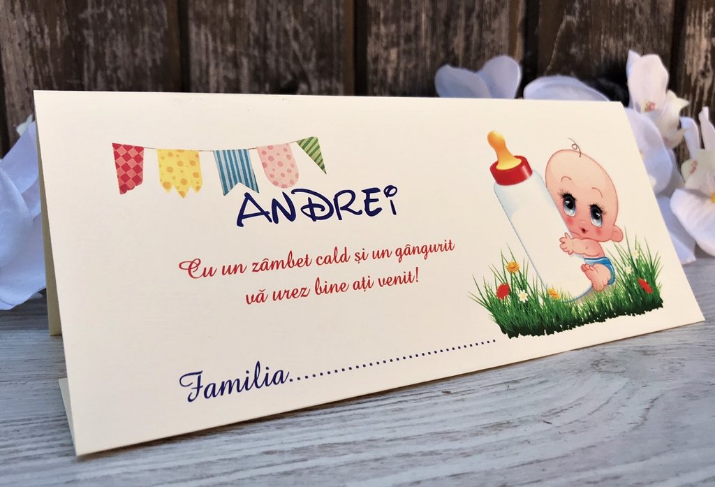 Personalizarea cu text inseamna sa scriem pe plic numele copilui si mesajul dorit.