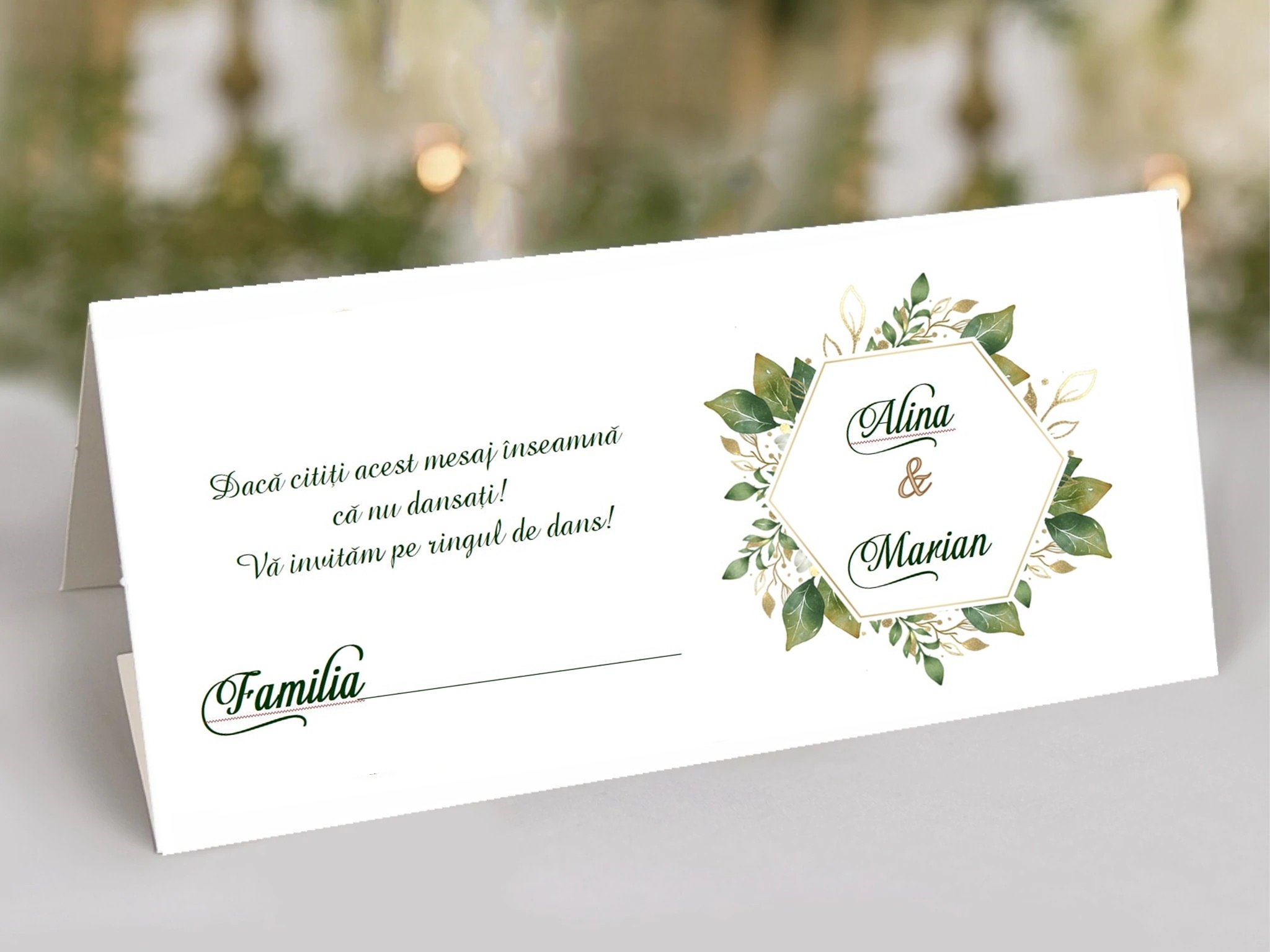 Plicul de bani nu se poate personaliza cu numele invitatului, doar in formatului familia..... sau doar .....