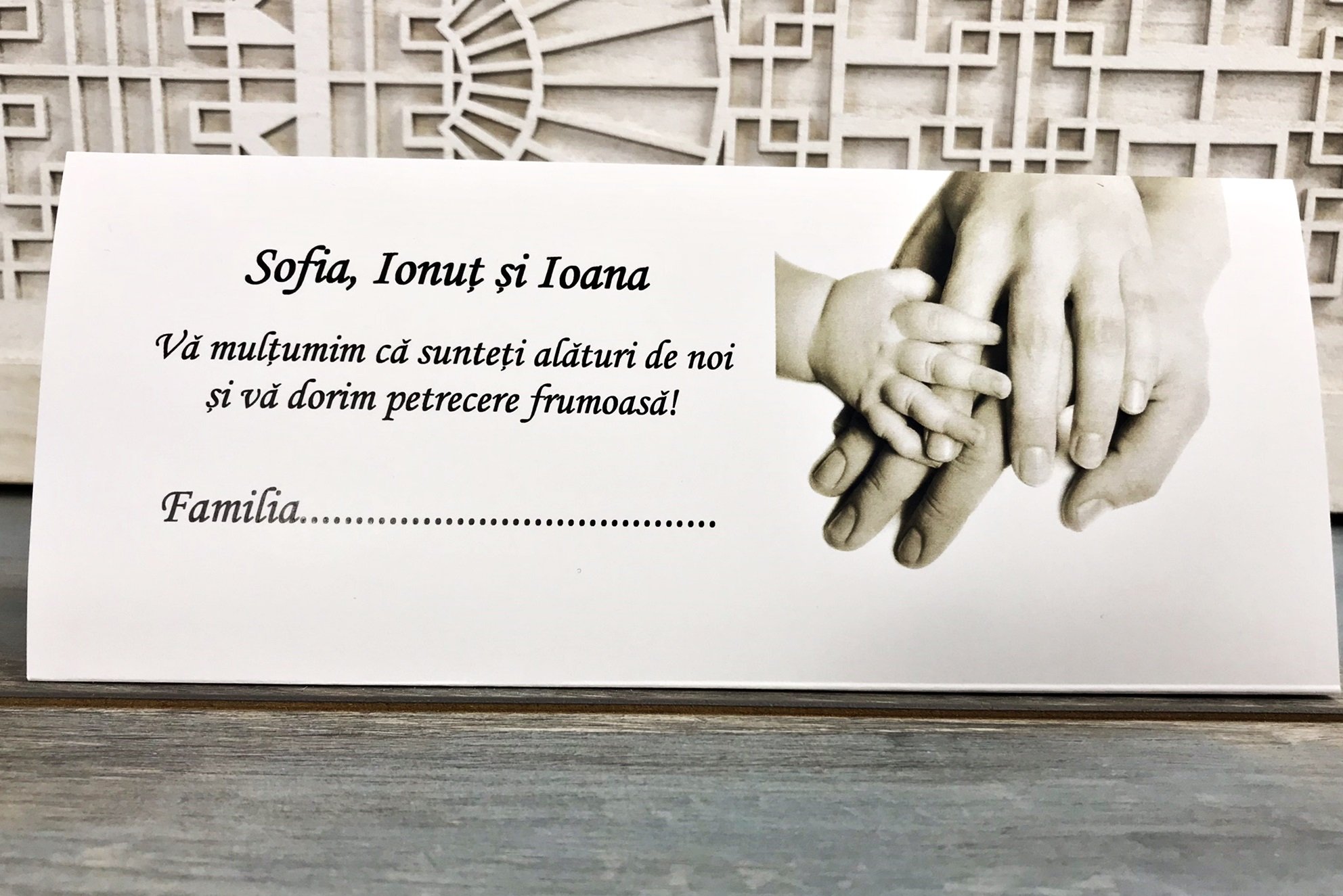 Plicul de bani nu se poate personaliza cu numele invitatului, doar in formatului familia..... sau doar .....